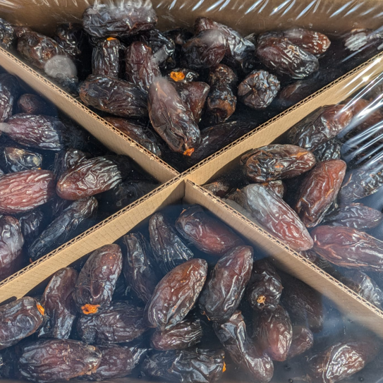 Dátiles Medjoul en caja de 5 kg, calibres Jumbo y Large. Ideal para distribuidores, tiendas gourmet y hostelería. Disponibilidad todo el año con envío a toda Europa.